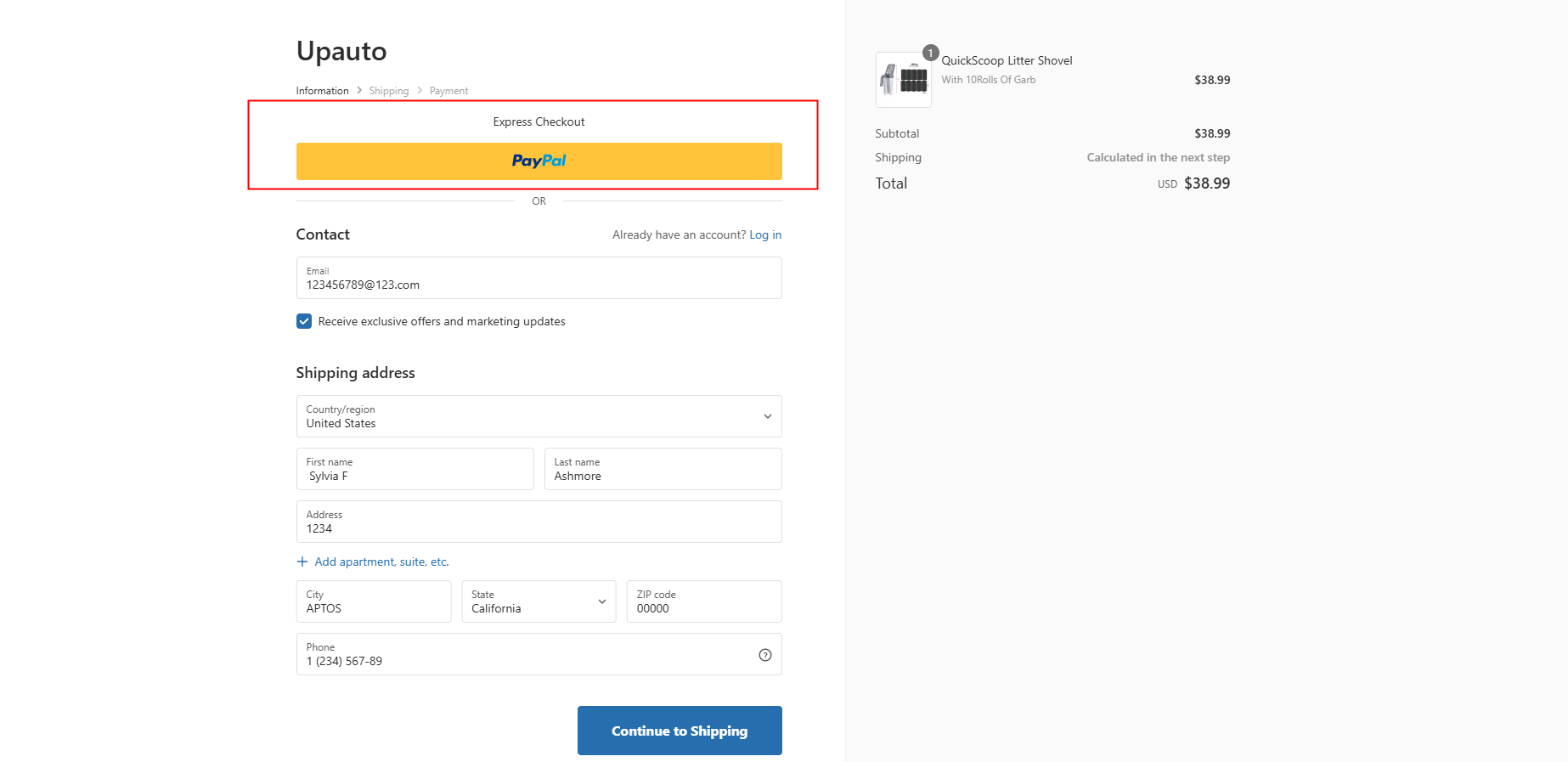 Step 1: Click the "Paypal" button when viewing YOUR CART (see picture below)